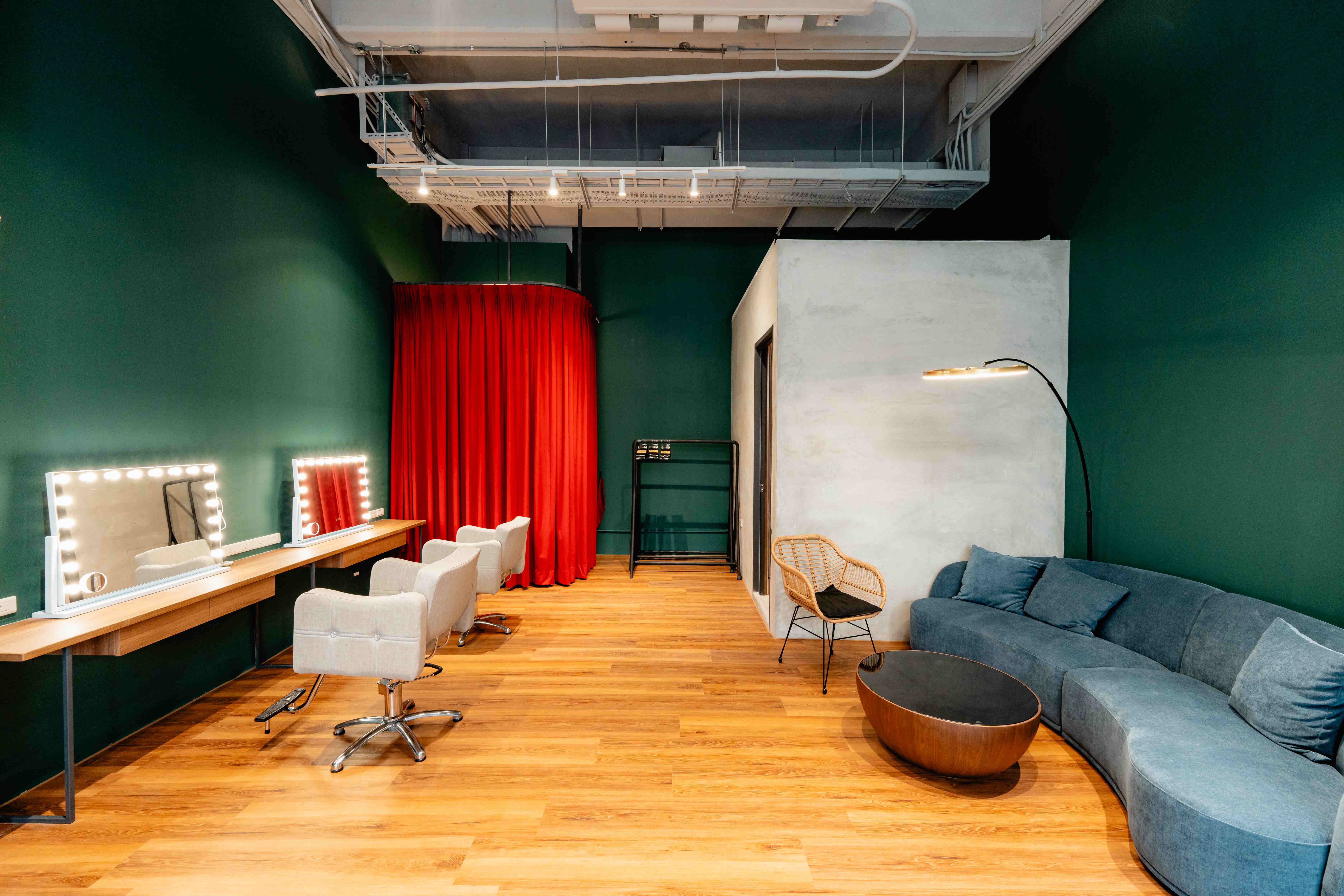挑高4.6公尺的專業攝影棚,具備無接縫牆面白棚與綠棚,滿足靜態及動態影像拍攝,位於一樓平面層臨路邊方便器材設備搬運。依需求日租以時段制計費,另有包日方案提供租借選擇。 空間內設置造型梳化間亦可單獨租借使用,適合有梳化、換裝需求外景拍攝需要治裝的團隊,有獨立衛浴間、化妝台、更衣間。